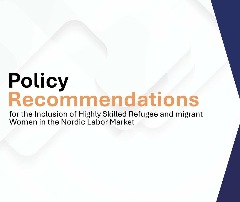 En rapport med anbefalinger til beslutningstagere, virksomheder og jobcentre for at sikre inklusionen af højtuddannede flygtninge- og migrantkvinder på arbejdsmarkedet i Norden. Rapporten kortlægger centrale barrierer og tilbyder konkrete anbefalinger til at nedbryde barrierer og sikre et inkluderende arbejdsmarked i Norden i samarbejde med civilsamfundsorganisationer.